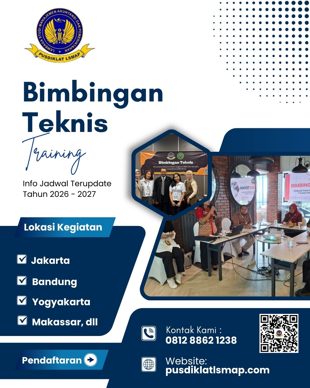 - Untuk Memehami Opsi Di Atas Maka Kami Lembaga Studi Manajemen Akuntansi Dan Pemerintahan Bersama Para Narasumber Dari Praktisi Dan Akademisi Melaksanakan Bimtek Etika dan Profesionalisme Jurusita Pajak Daerah 2026 Informasi Jadwal dan Tanggal Pelaksanaan Silahkan klik dan Download https://www.pusdiklatlsmap.com/download-jadwal/